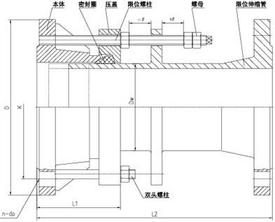 單法蘭松套限位伸縮接頭特點:實現了管道一邊法蘭連接,一邊為的不一致性的方便連接 VSSJA-1/BF VSSJA-